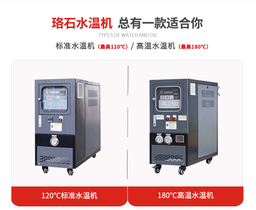 ?水循環(huán)溫度控制機又叫水溫機,水溫機主要有兩種,標準型和高溫型。標準型水式模溫機工作最高溫度為120℃,高溫型水式模溫機工作最高180℃。